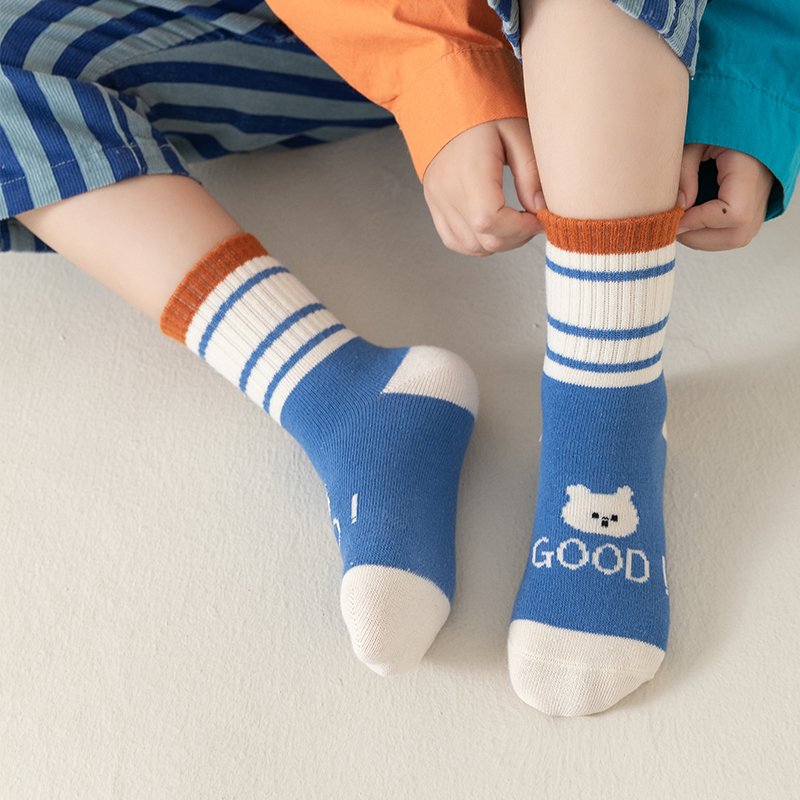 Kids Socks Boys Socks – Children’s Cartoon Bear & Striped Mid-Calf Socks 0-12 Years Old for Boys