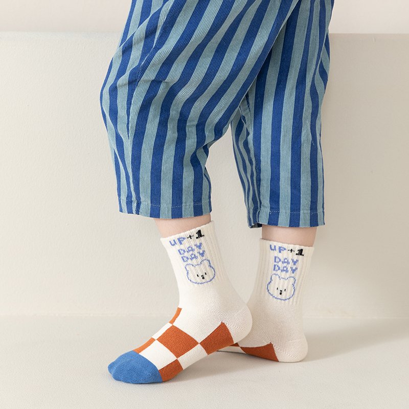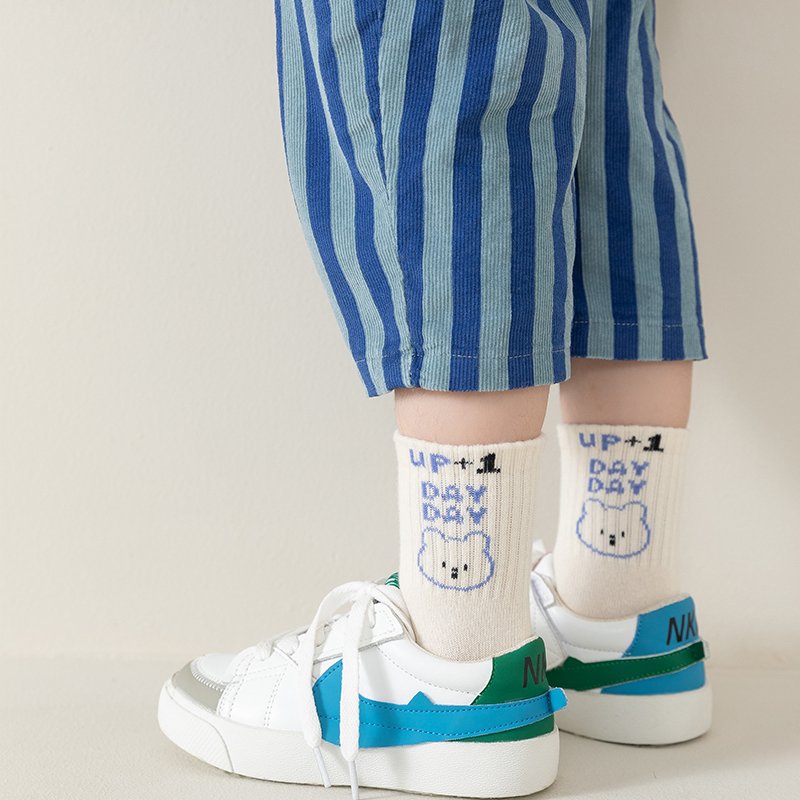- Cartoon Bear Sock: A cute bear graphic with “UP! DAY DAY” lettering – perfect for little dreamers who love adorable details.